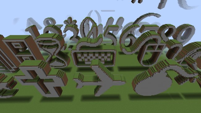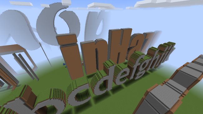 I am happy to annouce a new web tool has been added to the site that allows you to easily create 3D text schematics useable in McEdit. Several options are available to help customize your message, inlcluding, font, font size, two blocks types and more. Below you will find a few screenshots depicting a small sample of what is possible. Check out the pictures below, or test it out here!